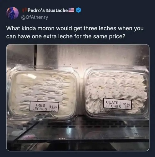 So tres leches cake has whipping cream, condensed milk, and evaporated milk. Cuatro leches cake adds dulce de leche.