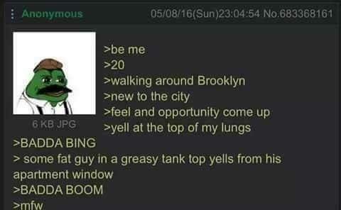 Lastly NO ONE in New York uses the phrase “badda bing badda boom”, that’s some lame Hollywood trope, I’ve literally never heard anyone use it in real life.