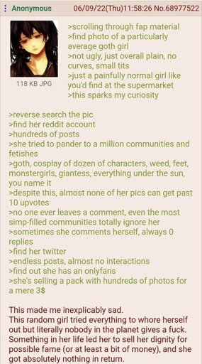 arrow-up10arrow-down1imageAnon investigates a random goth girlsh.itjust.works🍹Early to RISA 🧉@sh.itjust.worksM to Greentext@sh.itjust.works · 11 months agomessage-square2linkfedilink