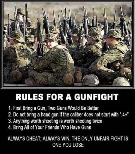 Oh, yeah you’re right. I read that wrong. I was reading that as if the caliber of the gun fight is less than .4, don’t bring a handgun.