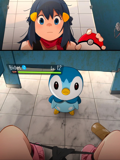 I thought the giveaway here was that the Pokémon is named “Bidet”, but all wild Pokémon are named whatever their species is (“Piplup”), meaning this one is already caught and was given a nickname by its trainer.